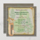 Invitation à une fête ou un tournoi de golf rustique avec une ambiance vieillie. Sacs de golf avec clubs de golf sur du papier grunge vintage avec des pins décolorés, sur fond de bois. Parfait pour un anniversaire, un tournoi, une retraite, un enterrement de vie de garçon ou une réunion de famille. Le dos est orné d'un pin transparent et de clubs de golf croisés. Illustration dessinée à la main par McBooboo.