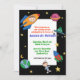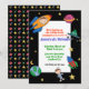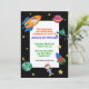 Extérieur, planètes, fusées et astronautes. Une invitation parfaite pour un anniversaire pour tout enfant qui aime voyager dans l'espace. L'invitation est facile à customiser avec votre libellé et votre police.