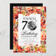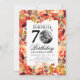 Un élégant design d'invitation à la fête "70e anniversaire" avec photo personnalisée, typographie moderne et motif de jardin fleuri.