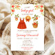 Cette invitation à baby shower d'aquarelle mignonne et capricieuse comporte un fil de linge pour bébé avec des pommes et de la verdure. Le texte combine écriture manuscrite et polices sans serif pour un look élégant et moderne. C'est parfait pour un baby shower d'automne. Graphiques par www.etsy.com/uk/shop/SunflowerDayLove