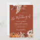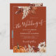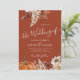 Moderne boho aquarelle botanique botanique fleurs, citrouille, feuillage et feuilles séchés faisant un budget d'automne chic abordable tout en un faire-part de mariage avec un script de calligraphie à la mode écriture manuscrite et la palette de couleur beige terre terre cuite. +++++++++++++++++++++++++ Personnalisez-le avec votre photo et votre code QR sur votre site Web ou à RSVP en ligne.