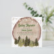 Cette adorable invitation au baby shower de bois de forêt impressionnera vos invités. L'illustration de l'aquarelle est composée d'une tranche de bois rustique superposée d'aquarelles et d'un éclairage extérieur à baldaquin. Les couleurs, feutrées et élégantes, sont vert chasseur, marron chocolat foncé et teintes de tanins. Le côté arrière comprend des arbres forestiers au fond avec beaucoup de place pour inclure des informations supplémentaires. Cliquez sur Modifier à l'aide de l'outil de conception pour apporter des modifications supplémentaires à cette invitation.