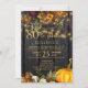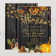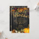 De magnifiques fleurs orange rouille et bordeaux foncé d'automne avec des citrouilles et des guirlandes de lumières scintillantes dorées sur un fond en bois de grange brun foncé créant une invitation d'anniversaire élégante et charmante de 80 ans avec une typographie dorée à la main tendance. +++++++++ Facile à personnaliser avec vos détails ! Convient aux rassemblements traditionnels rustiques | campagnards | de ferme | de jardin familial en plein air.