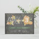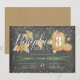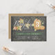 Tombez amoureux de ces invitations rustiques et élégantes à des soirées anniversaires de enfants dans une palette de couleurs d'automne orange, vert chasseur et marron. "Notre petit citrouille tourne" apparaît en haut dans le script de calligraphie chic en écrivant, avec l'âge de votre enfant inscrit sur un citrouille orange, sur un arrière - plan de tableau rouge rustique. Exemple présenté pour un troisième anniversaire. Personnalisez avec les détails de votre fête d'anniversaire en dessous en lettres blanches.