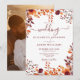 Cette élégante invitation de mariage aux feuilles florales d'automne aquarelle peut être personnalisée avec vos informations en typographie burgundy élégante et une photo spéciale au verso. Conçue par Thisisnotme©