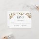 Des aquarelles verdoyantes mêlées de vert et de rouge brique mettent en valeur cette carte botanique RSVP thématique automne. Le verso de la carte affiche le monogramme de la mariée et du marié entouré d'une couronne de laurier assortie. Personnalisez la date de réponse requise et vos initiales dans le modèle de texte.