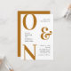 Monographies de typographie en gras faire-part de mariage + détails et QR Code sur le côté arrière dans les couleurs jaune et ocre moutarde. Convient pour le mariage automne / automne.