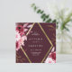 Célébrez un mariage d'automne romantique avec cette élégante invitation florale qui comprend un cadre diamant géométrique doré, des dahlias bordeaux aquarelles, des pivoines rousses et un feuillage d'automne rustique. Idéal pour les mariages campagnards extérieurs, les jardins boho ou les douces touches vintages.