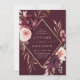 Ce faire-part de mariage est orné d'une couronne de fleurs d'aquarelle de dahlias, roses de jardin et de pivoines en rouge bordeaux, marron, rose roux sur les feuilles d'automne avec un cadre en faux diamant d'or. Pour une personnalisation plus avancée de cette conception, cliquez sur le BOUTON OUTIL DESIGN BLEU. Des articles correspondants sont également disponibles.