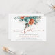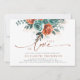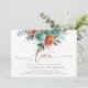 Un magnifique bouquet de roses et de feuillage, peint en aquarelle délicate et romantique, avec des tons d'orange brûlé, de terre cuite, de marron et beige turquoise et terreux, crée un cadre floral élégant pour cette invitation à la douche nuptiale d'automne avec un thème de chute d'amour, qui dispose également de calligraphie moderne. Le design est un mélange intemporel de sophistication classique et le charme ludique des fleurs, parfait pour le romantique moderne. Idéale pour un fiançailles d'automne, cette invitation convient à la fois à l'élégante mariée et mariée bohème et à ceux qui planifient une fête de jardin, une fête de jardin, ou un événement formel dans les jardins d'un château. Un beau choix pour les épouses qui recherchent une touche de fantaisie de la nature avec une élégance raffinée.