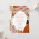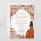 Quinceanera invitation avec fleurs séchées, roses, pampas herbe et palmiers, et feuilles d'automne. Ce design présente une fille dans une robe de coing, entourée de belles fleurs d'automne et de papillons monarques (qui peuvent être cachés dans l'outil de design si vous ne voulez pas d'eux). Voir le magasin pour ce design en plusieurs variantes, y compris les teintes de peau/cheveux, et sans la fille aussi.