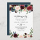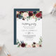 Cette invitation à la fête du 50e anniversaire de la Bourgogne rustique d'automne est parfaite pour une simple fête d'anniversaire. Le design est composé de fleurs bordeaux, rouges, navales, bleues et rousses rayonnantes et gracieuses peintes à la main, inspirant la beauté naturelle.