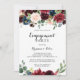 Cet automne rustique moderne calligraphie invitation de fiançailles est parfait pour une simple célébration fiançailles. Le design est composé de fleurs bordeaux, rouges, navales, bleues et rousses rayonnantes et gracieuses peintes à la main, inspirant la beauté naturelle.