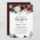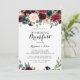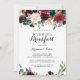 Cet automne calligraphie moderne rustique invitation mariage petit-déjeuner est parfait pour une famille simple et des amis journée après le mariage se réunir petit-déjeuner. Le design est composé de fleurs bordeaux, rouges, navales, bleues et rousses rayonnantes et gracieuses peintes à la main, inspirant la beauté naturelle.