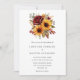 Invitation vos invités à votre mariage de automne avec ces invitations de mariage florales avec tournesols, roses rouges et verdure.