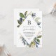 Cette carte de faire-part de mariage en diamant vert automne est parfaite pour un mariage de automne. Le design rustique moderne présente des feuilles bleu marine, vert sauge et or avec des branches de fleurs bleu foncé.