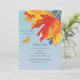 Cette invitation colorée d'automne présente des feuilles rouges jaunes et bleus avec une pointe de bruine légère qui se met en marbre au fond avec chaque goutte de chute. Ce design est parfait pour les fêtes d'automne, les fêtes d'automne ou les invitations de Thanksgiving.L'invitation est facile à customiser avec votre libellé, police, couleur de police et choix de six types de papier.