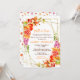 This fun and whimsical baby shower invitation features watercolor pomegranate, apples, grapes, mushrooms and foliage on a gold geometric frame. The text combines handwritten script and serif fonts for a stylish and modern look. This is perfect for a rustic autumn fall baby shower.