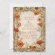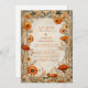 A romantic autumn wedding design with a vintage botanical frame of warm orange marigolds and dried meadow flowers. The golden baroque detailing and parchment background create an elegant, nostalgic mood — perfect for fall weddings, rustic celebrations, or garden-inspired events.