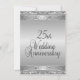 Élégantes invitations d'anniversaire de mariage d'argent pour une réception / fête de 25 ans de mariage. Avant et arrière argent avec texte noir au dos donnant un look classe à cette invitation d'anniversaire unique.