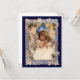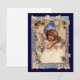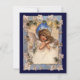Illustration vintage religieuse de l'ère victorienne représentant une belle image de Noël avec un ange. Ce chérubin angélique est entouré de lierre, de fleurs, d'étoiles et de cloches.