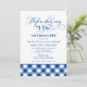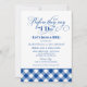 Cette invitation de dîner de répétition « Before They Say I Do — Let's Have a BBQ » audacieuse et joyeuse présente une typographie de script bleu royal saisissante et une bordure de vichy bleu royal classique. Le fond blanc épuré garde le design net et moderne tandis que le vichy ajoute un charme décontracté et festif. Tout le libellé est entièrement modifiable pour votre événement. Idéal pour un BBQ de dîner de répétition d'été dans la cour ou le parc.