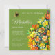 Joyeux anniversaire d'abeille ! Fleurs heureuses et une abeille joyeuse bourdonnant autour d'une douce invitation d'anniversaire, peinte à l'aquarelle.