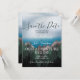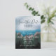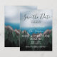 Une forêt verte luxuriante qui pousse sur de hauts sommets montagneux rencontrant un océan bleu profond, vraiment le meilleur des deux mondes. Une invitation de mariage "save the date" inspirée de l'endroit où les montagnes rencontrent l'océan, parfaite pour un mariage champêtre, en pleine nature ou dans une station de montagne.