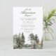 Cette invitation de fête de bébé aventureuse 'que l'aventure commence' aquarelle forêt lacustre peut être personnalisée avec vos informations en typographie moderne et une photo spéciale, ainsi que les détails de votre code QR de liste de naissance au verso. Conçue par Thisisnotme©