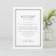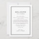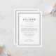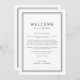 Un modèle d'itinéraire fin de semaine mariage noir et blanc raffiné de l'Avery Suite, avec une fine bordure double, et une typographie sans serif propre. Idéal pour les mariages modernes et minimalistes. Le recto de la note de sac de bienvenue comporte une lettre de bienvenue mariage et le verso présente la chronologie de l'itinéraire mariage. Ces notes sont parfaites pour les mariages de destination et les sacs de bienvenue des clients de l'hôtel.