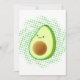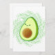 Un avocat de style dessin animé avec effet déprimé appliqué à l'arrière - plan. Idée cadeau pour les adultes et les enfants qui aiment les avocats et la nourriture saine. La carte est vide au dos pour les messages manuscrits.