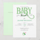Invitation à une BABEAU THÈME VERT adorable avec une typographie BABÉ verte et une petite tétine. Sexe neutre.
