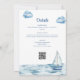 Invitation à une baby shower nautique 'Baby on board', personnalisée avec votre nom et date spéciale. Avec votre code QR de liste de naissance et les détails de l'événement au verso. Conçu par Thisisnotme