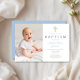 Invitation Baby Blue Script moderne Croix Boy Photo Baptême