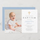 Baby Blue Script moderne Cross Boy Photo Baptême Invitation.