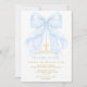 Celebrate this special milestone with an elegant and timeless baptism invitation. Featuring a soft blue satin bow, delicate lace details, and a classic cross accent, this design creates a refined and meaningful look, perfect for your baby boy’s christening. This invitation blends traditional charm with a modern, luxurious aesthetic, making it ideal for baptisms, christenings, and religious celebrations. Matching items available.
