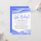 Lorsque la famille et les amis ne peuvent pas être ensemble, fêtez la future mère à travers les kilomètres avec un baby shower virtuel en ligne. Cette invitation à baby shower garçon fraîche et chic comprend "Oh Baby !" dans un script bleu élégant et aquarelles d'agate bleu géode avec des veines de fausse parties scintillant argentée.