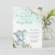 Invitation Baby elephant & green flowers girl baby shower.