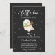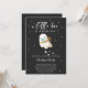 Carte de modèle d'invitation à thème baby shower Halloween mignonne avec l'illustration d'un bébé fantôme avec une sucette bleue et une écharpe orange sur. La fonction de texte est "un petit boo est presque dû" parfait à la fois pour garçon et fille bébé attendu à l'automne.