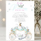 Cette invitation au baby shower, mignonne et enchanteresse, a pour thème la Cendrillon fée. Un chariot de princesse de style citrouille est imprimé en bas avec des accents de parties scintillant turquoise et or. Le haut de l'invitation dit "Une petite princesse est en route" avec une petite couronne mignonne placée au centre.
