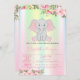 Invitation Baby Girl Elephant, Iridescente Baby shower Floral