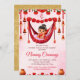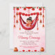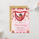 Petite fille Indienne traditionnelle Baby Naming Namkaran Ceremony Cradle Ceremony editable invitation modèle instantanée téléchargement numérique, Namakarana cérémonie invitation, mignonne petite fille dans le berceau saree rouge décoré de guirlandes de fleurs de carnation rouge et de guirlandes d'or et de cloches rouges, adapté à une petite fille.