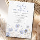Celebrate the Mom-to-be with this elegant baby in bloom invitation, featuring blue watercolor wildflowers. Personalize the invitation with your information. This whimsical design is perfect for a baby boy.