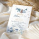 Inspired by a peaceful spring meadow, this “Baby in Bloom” invitation features delicate blue wildflowers, fluttering butterflies, and a charming baby clothesline illustration. The soft watercolor palette creates a fresh, airy feel—perfect for inviting loved ones to celebrate a sweet new arrival.