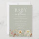 Invitation Baby in Bloom Boho Fleur sauvage Baby shower vert