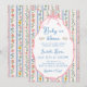 A soft vintage-inspired baby shower invitation with delicate watercolor wildflowers in pastel pink and blue tones. The striped floral background creates a light, elegant feel, while the scalloped frame and pink bow add a sweet and timeless touch. Matching items available.