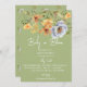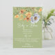 Sage green Baby in bloom meadow colorful dusty blue flowers baby shower wildflowers invitation template instant download. Watercolor wildflowers mixed colors dusty blue for a garden flowers themed baby shower invitation.
