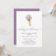 A modern, floral baby shower invitation featuring an elegant lavender watercolor tulip bouquet tied with a cute coquette bow. The phrase “Baby in Bloom” is highlighted in soft lavender minimal script, creating a chic yet whimsical design that blends sophistication with gentle charm. Perfect for celebrating new beginnings with a touch of modern elegance and floral delight.