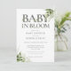 Baby in bloom invitation de baby shower avec une typographie élégante et un beau feuillage botanique de verdure. Conçu par Thisisnotme©