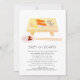 Ce baby shower "bébé à bord", mignon et kawaii, sans distinction de genre, par invitation postale, comporte des sushis et des rouleaux sur un plateau en bois avec une paire de baguettes en aquarelle sur un arrière - plan blanc. L'envers est composé d'un arrière - plan blanc avec des motifs gris. Modifiez la couleur arrière - plan à la fois sur le devant et sur le dos et personnalisez-la selon vos besoins.
